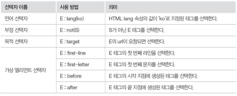 | :visited 선택자 | 웹 문서에서 사용자가 방문한 곳 표시 | |