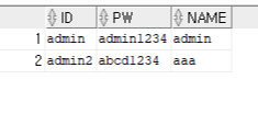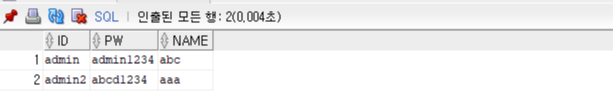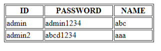 <!--쌍따옴표 제거했을 때, sql에서 입력하는 형식 VALUES('id', 'pw', 'name')";-->