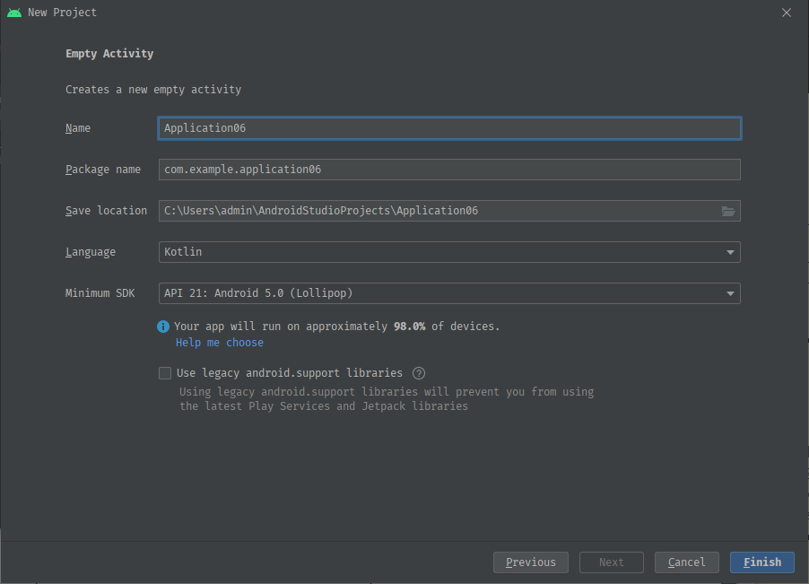 -새로은 모듈에서 작업 : file - New Module : phone&tablet / lab06 / empty activity