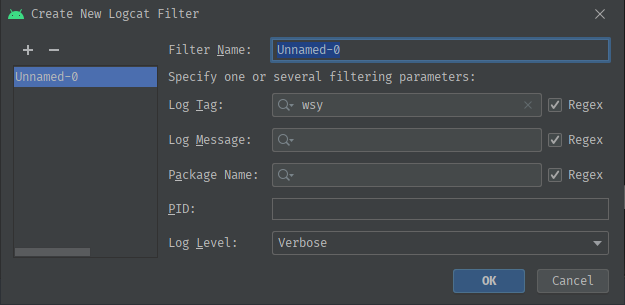 -Log.d에 wsy 태그 넣은 것만 로그캣에서 출력하겠다는 뜻.