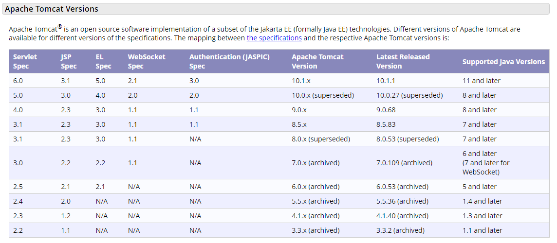 onlyun 2022. 11. 4. 14:01#tomcat version 8.5 only supports j2ee 1.2 1.3 1.4 and java ee 5 6 and 7 web modules