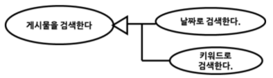 | 일반화관계 | -유사한 유스케이스/액터를 모아 추상화한 유스케이스와 연결 시켜 그룹핑 | ![]() |